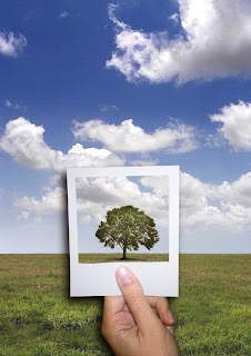 Uma delas, que, ao meu ver, é a que mais condiz com o contexto, seria a abordagem a respeito da preservação ambiental. O que se vê é um campo aberto, e uma foto com uma árvore no meio dele. A foto, no caso, representaria a conservação da árvore (fotos podem ser guardadas por muito tempo).
