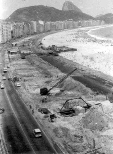 Em seu blog ela retratou um pouco mais desta história de transformações. “A praia que eu conheci e tomei muito banho de mar era essa da foto abaixo. Dá para notar que até os famosos ondulados de pedra portuguesa são mais estreitos? A praia era mais estreita, as calçadas era mais estreitas. Mas…”