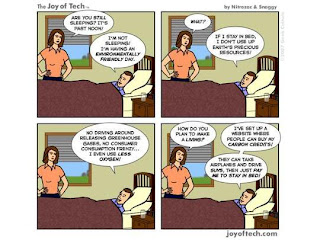 Homem: Não estou dormindo. Estou num dia ambientalmente amigável.